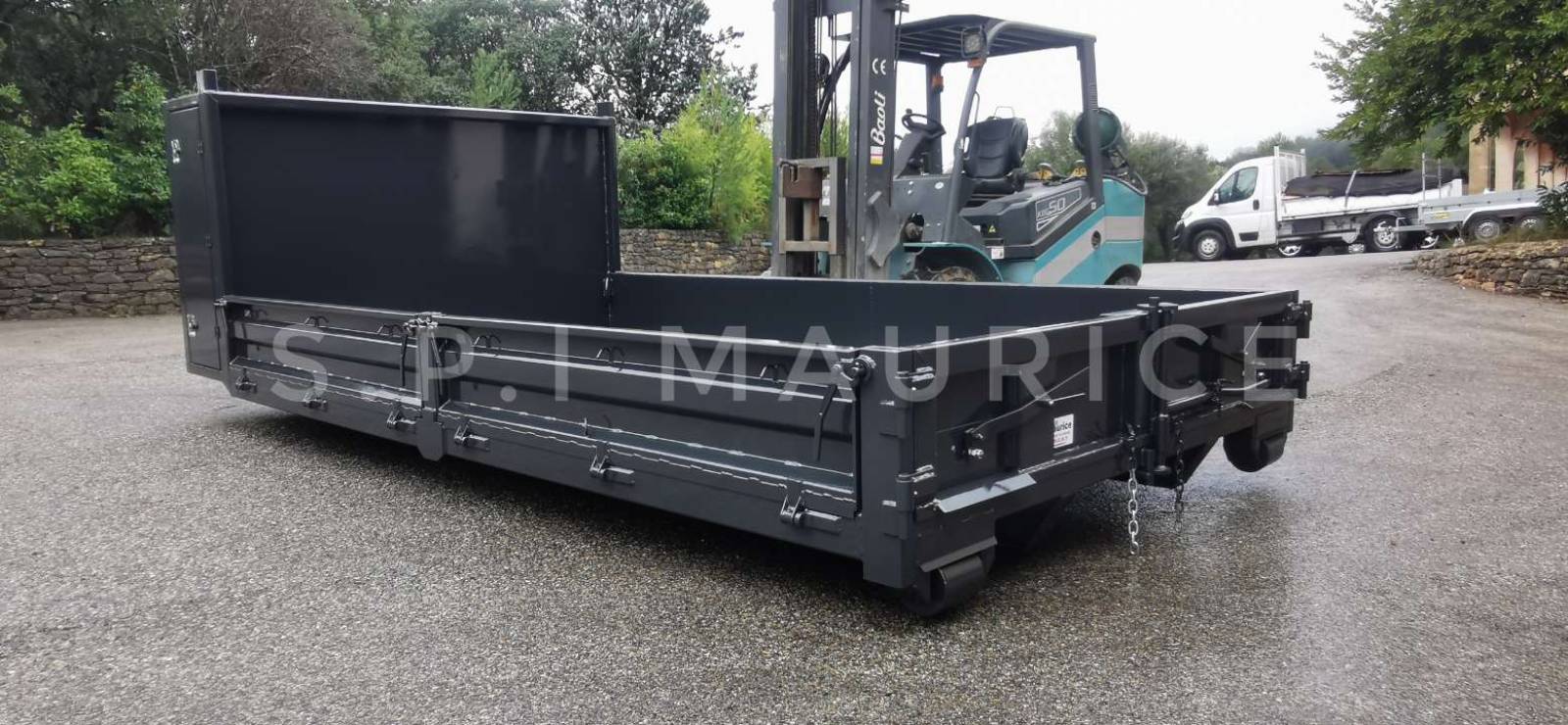 Sur un côté de la benne, la ridelle est fixe, sur l'autre côté, deux ridelles amovibles.